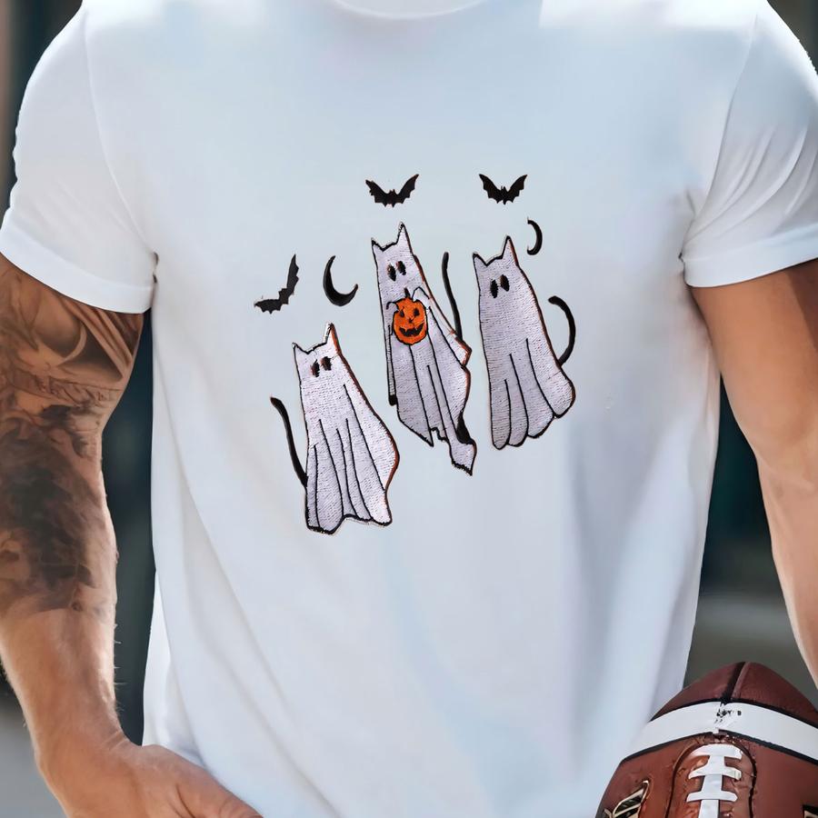 Ghost Cats Halloween Sweatshirt: Spooky Fall Crewneck T-shirt