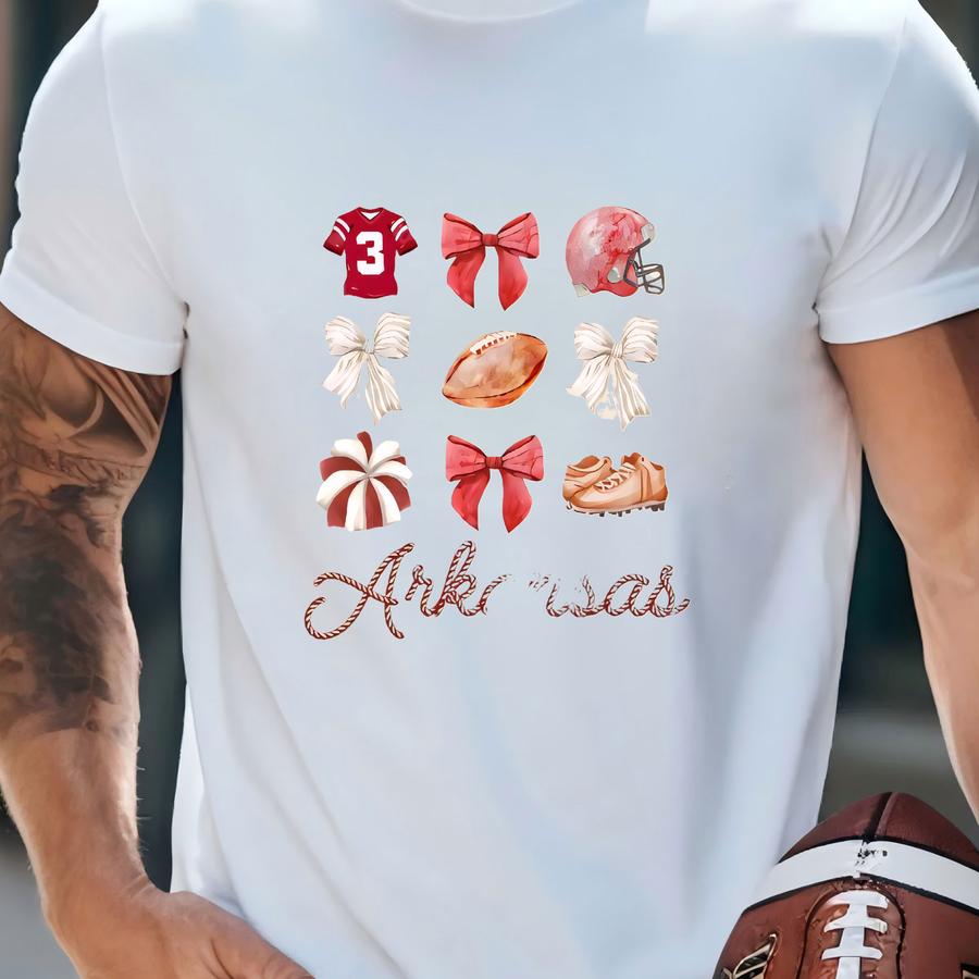 Kids Arkansas Football Bow Shirt, Arkansas Football, Toddler Arkansas Shirt, Baby Arkansas Shirt, Game Day, Football Bow, Coquette, Ak T-shirt