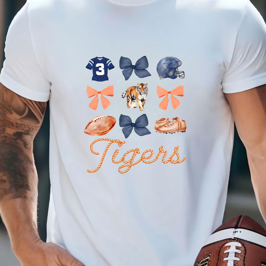 Kids Tigers Football Bow Shirt: Game Day School Spirit T-shirt