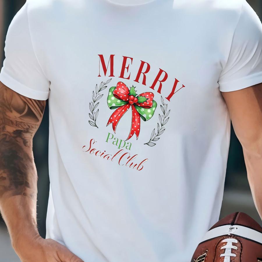 Family Christmas Shirt, Gift Merry Christmas T Shirt, Custom Name Tee, Family Matching Tshirt, Merry Mama Papa Gigi Shirts, Coquette Bow Tee T-shirt