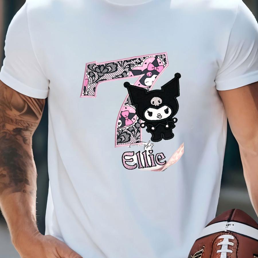 O Kat Kurimo Omi Birthday Friend Applique Shirt - Girls Party Top - O Cat Party - Pink Purple Personalized Name Ruffle Puff Regular T-shirt