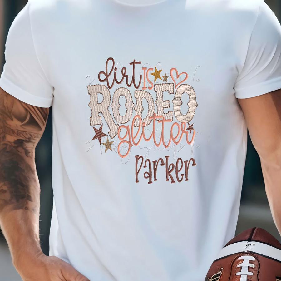 Dirt Is Rodeo Glitter Personalized Name Top - Girl's Rodeo Outfit - Western Theme Cowgirl Shirt T-shirt