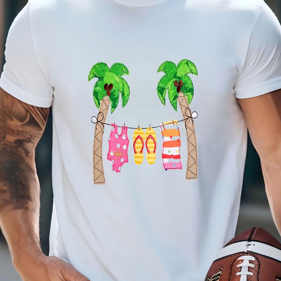 Girl's Summer Clothesline Applique Shirt - Swimsuit - Beach Towel - Flip Flops - Personalized Name - Girl's Summer Beach Shirt T-shirt