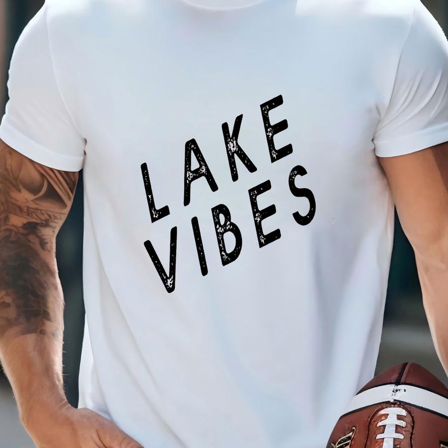 Lake Vibes Canvas Tote - Made In Usa - Black - Xl Size - Summer Tee - Lake Life - Boat - Carryall Tote - Cotton - Shoulder Straps T-shirt