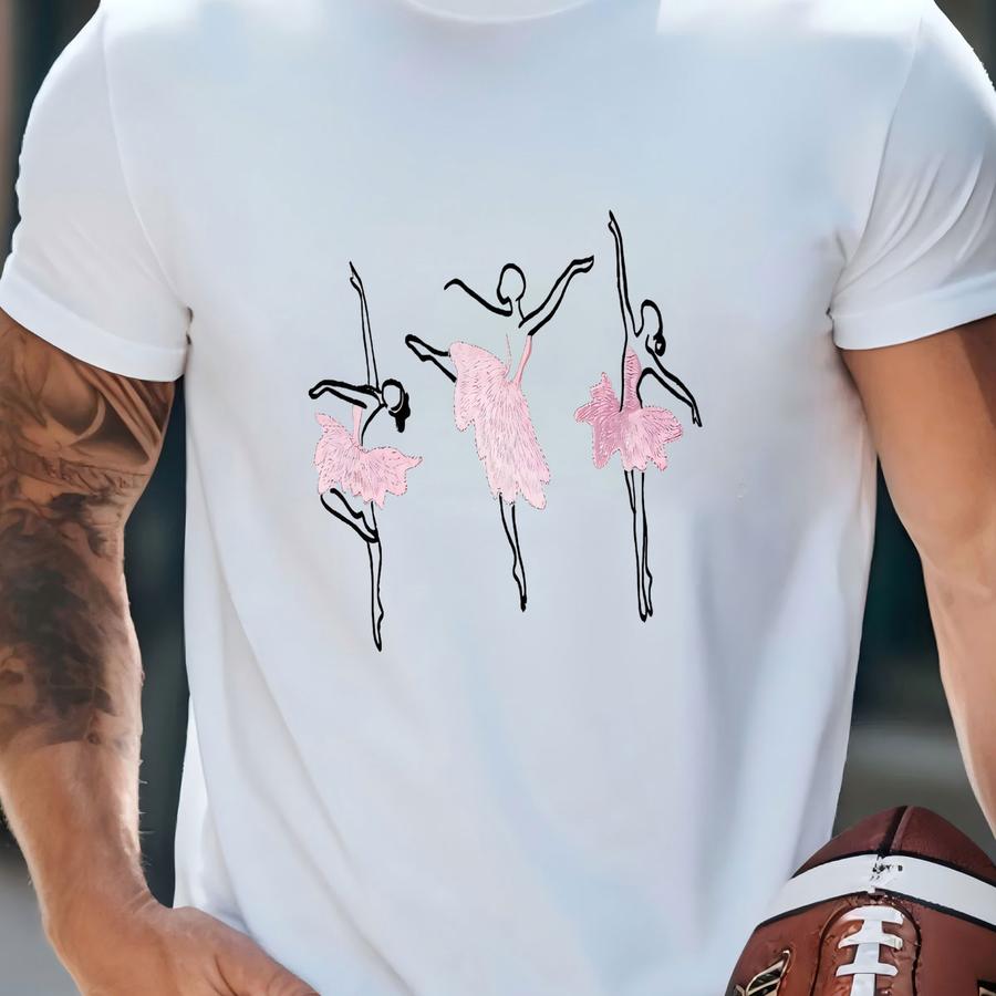 Girl's Ballet Coverup - Front Monogram With Back Ballet Dancer Trio - White Long Sve - Button Front - Coverup Makeup Hair Access Shirt T-shirt