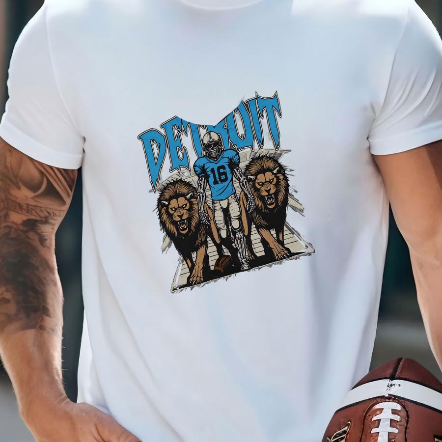 Detroit Football Skeleton Graphic Hoodie - Vintage Lions Heavyweight Hoodie T-shirt