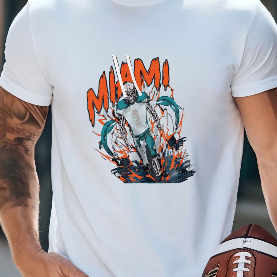 Miami Football Hoodie - Graphic Hoodie - Skeleton Shirt - - Gift Hoodie - Vintage - Skeleton Football - Dolphins T-shirt