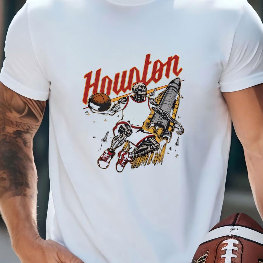 Houston Basketball Skeleton Graphic Sweatshirt - Vintage Rockets Crewneck Sweatshirt T-shirt