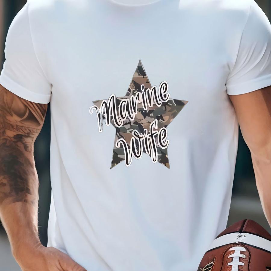 Marine Wife, Camo Star Tee, Patriotic Hoodie, Unisex Casual Shirt For Wife, Veteran Support Apparel, Military Gift, Military Spouse T-shirt