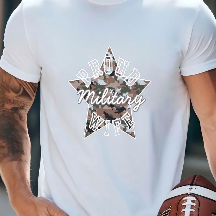 Military Wife Camo Star Tee, Patriotic Camouflage Hoodie, Unisex Casual Shirt For Marines Fans T-shirt