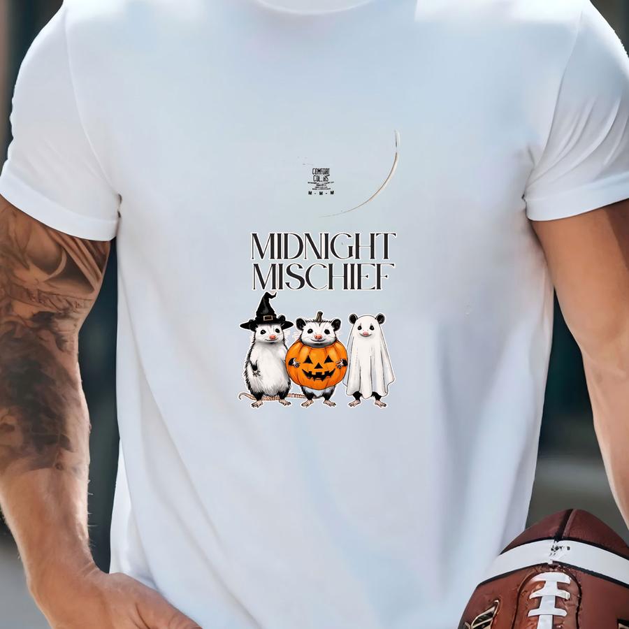 Midnight Mischief Hoodie, Halloween Shirt, Unisex Tee, Cute Animal Shirt, Ghost Hoodie, Fall Fashion, Spooky Attire, Opossum Shirt, Autumn T-shirt