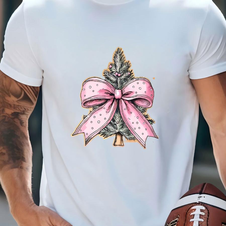 Personalized Christmas Tree Dtf Transfer: Pink Bow Holiday Shirt Print T-shirt