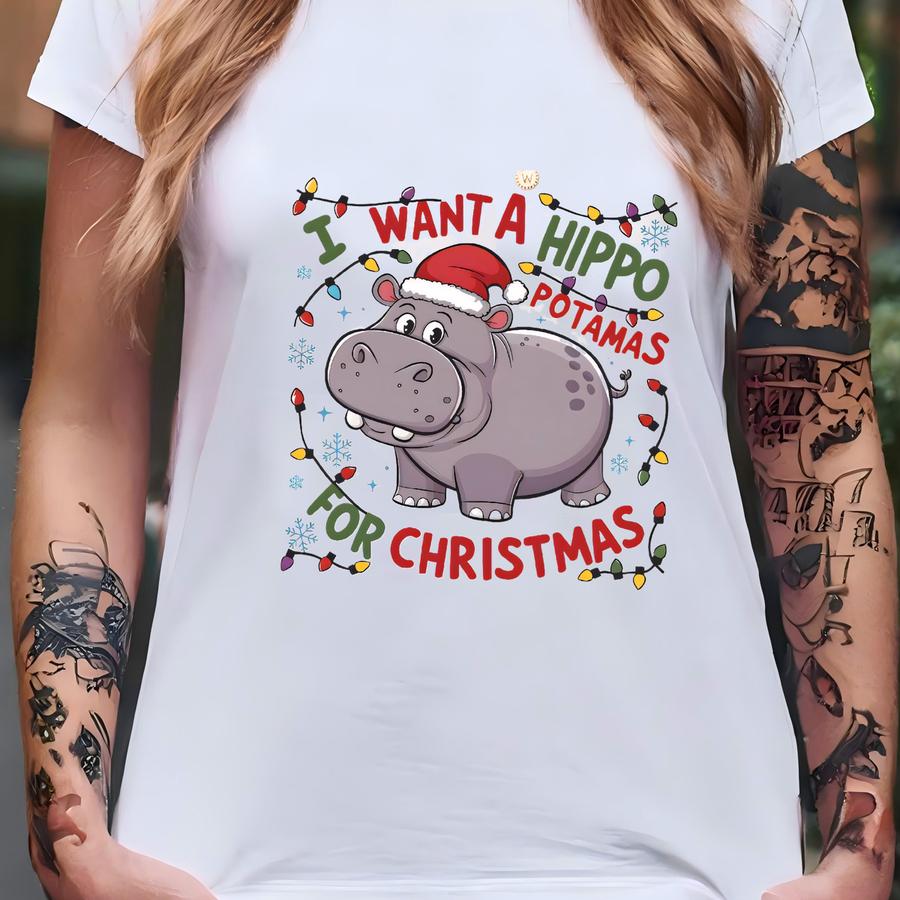 I Want A Hippopotamus For Christmas Sweatshirt, Hippo Christmas Lights Sweater, Christmas Hippopotamus Tshirt, Cute Christmas Party Shirts T-shirt