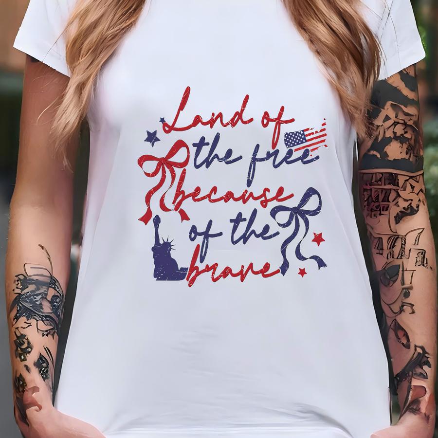 Land Of The Free Because Of The Brave Shirt, Retro 4th Of July Hoodie, Coquette Bow American Tee, Patriotic Gift, Independence Day Outfit T-shirt