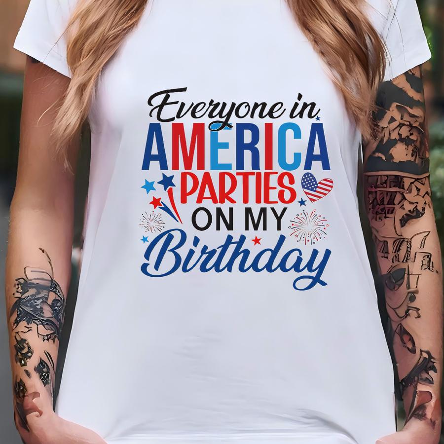 Everyone In America Parties On My Birthday Hoodie, 4th Of July Shirt, July Birthday Gift, American Birthday Party Tee, Firecracker Crewneck T-shirt