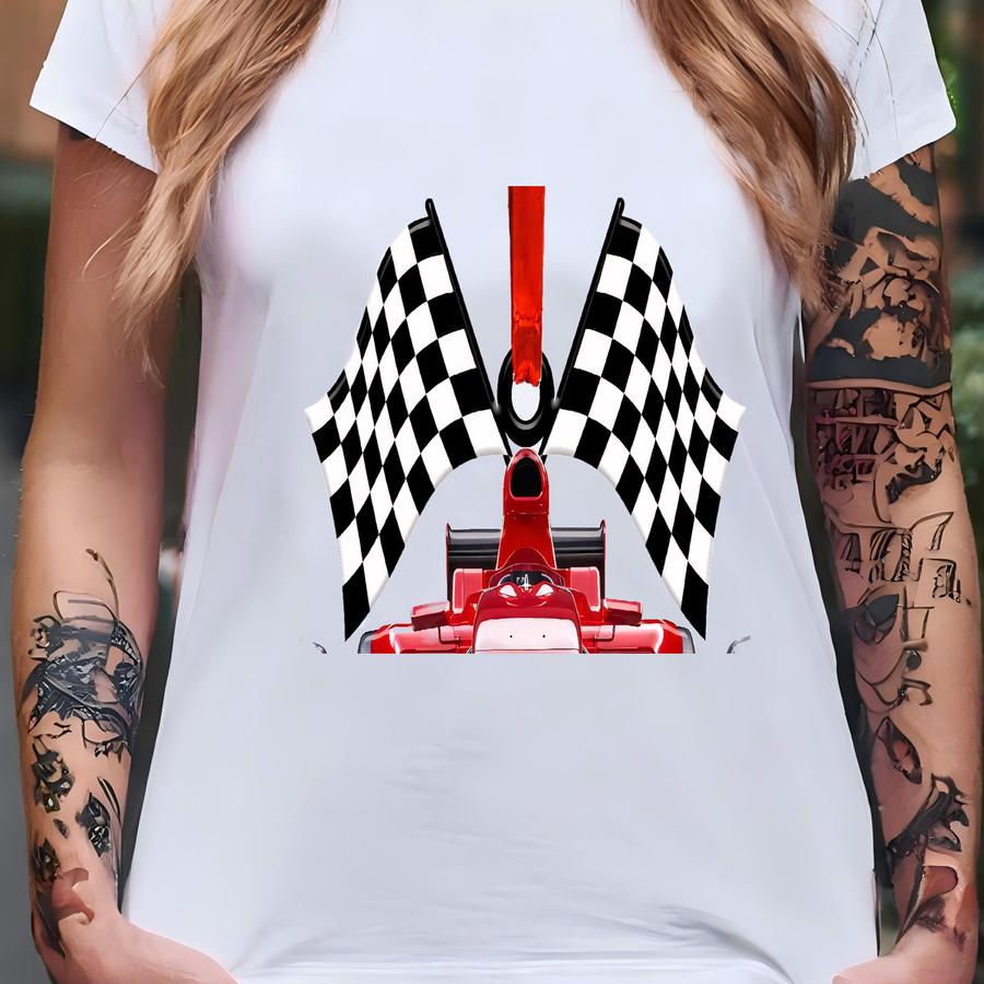 Personalized F1 Racing Car And Flag Ornament, Acrylic Racing Car Christmas Ornament, Racing Lovers Ornament Keychains Gift Home Decor T-shirt