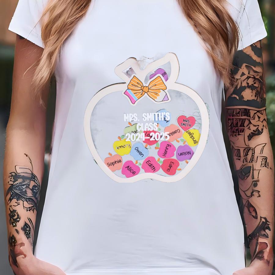 Personalized Apple Shaker Ornament 2024, Custom Teacher Gift With Student Names, Vintage Wood Acrylic Classroom Keepsake, Xmas Tree Decor T-shirt