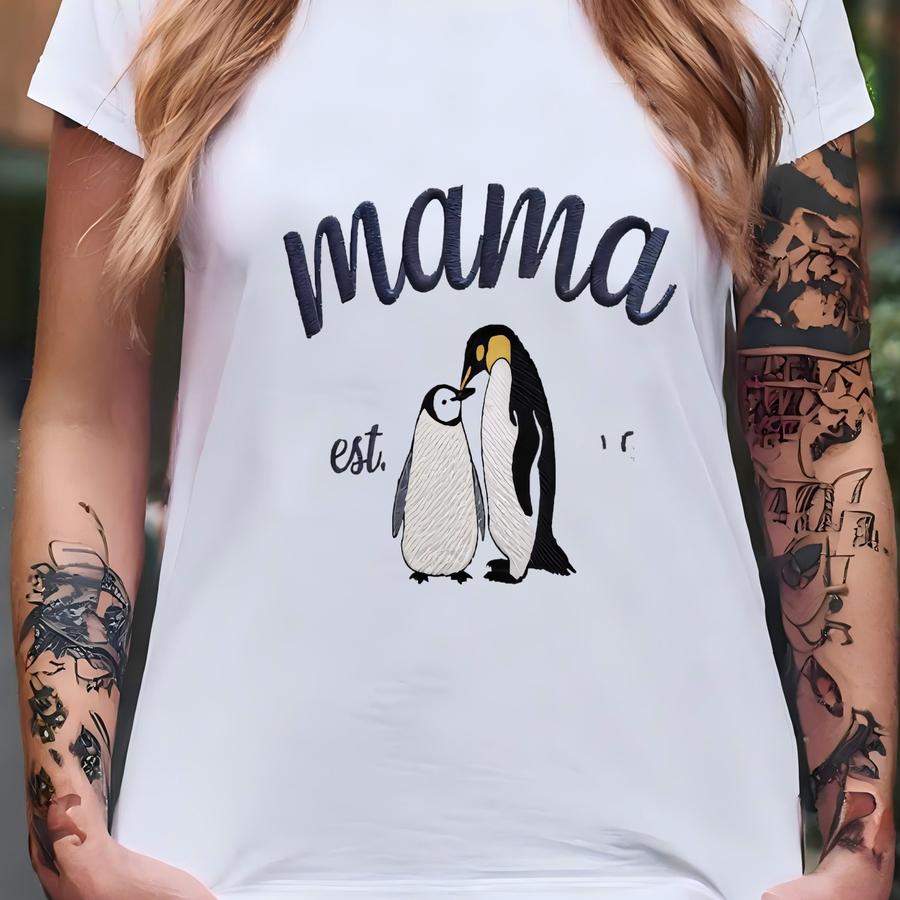 Mama Penguin Est Custom Sweatshirt, New Mama Sweater, Mom Grandma Sweatshirt, Pregnancy Announcement Gift Mama, New Mom Hoodie T-shirt