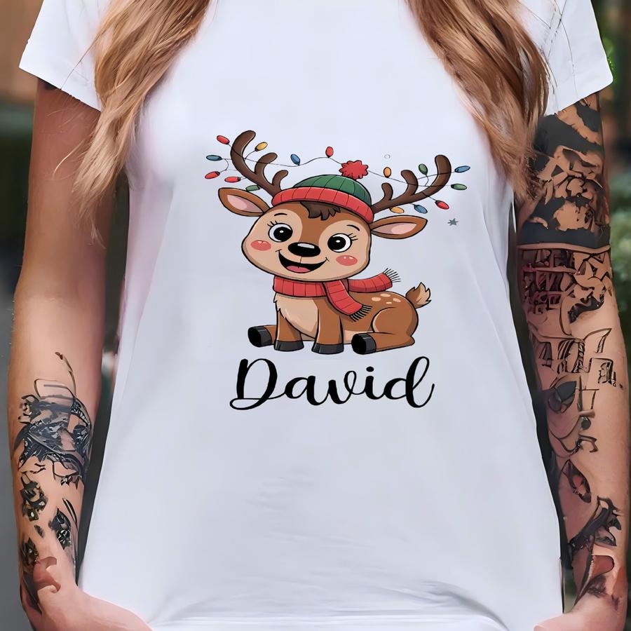 Personalized Kids Christmas Shirt, Girls Reindeer Name Toddler Shirt, Custom Retro Xmas Natural Boys Tee,cute Holiday Family Matching Shirts T-shirt