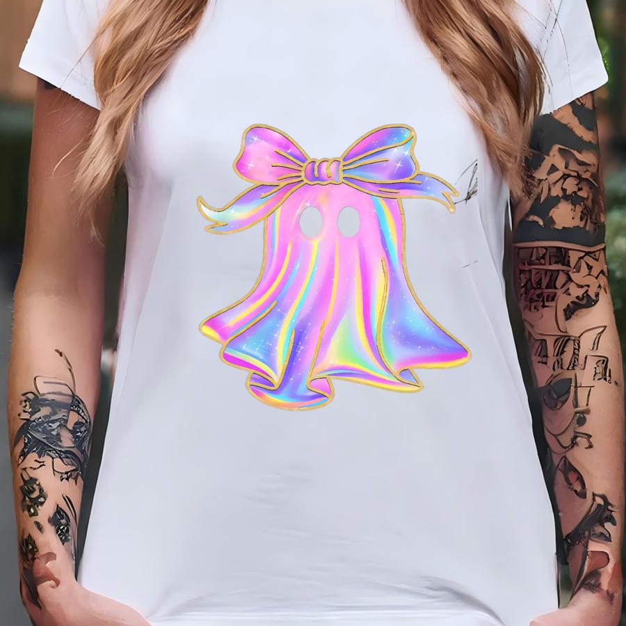 Iridescent Ghost Girls Shirt, Youth Halloween Shirt, Boo Girls Shirt, Halloween Shirts For Toddler Girls, Halloween Little Girl Tee. T-shirt