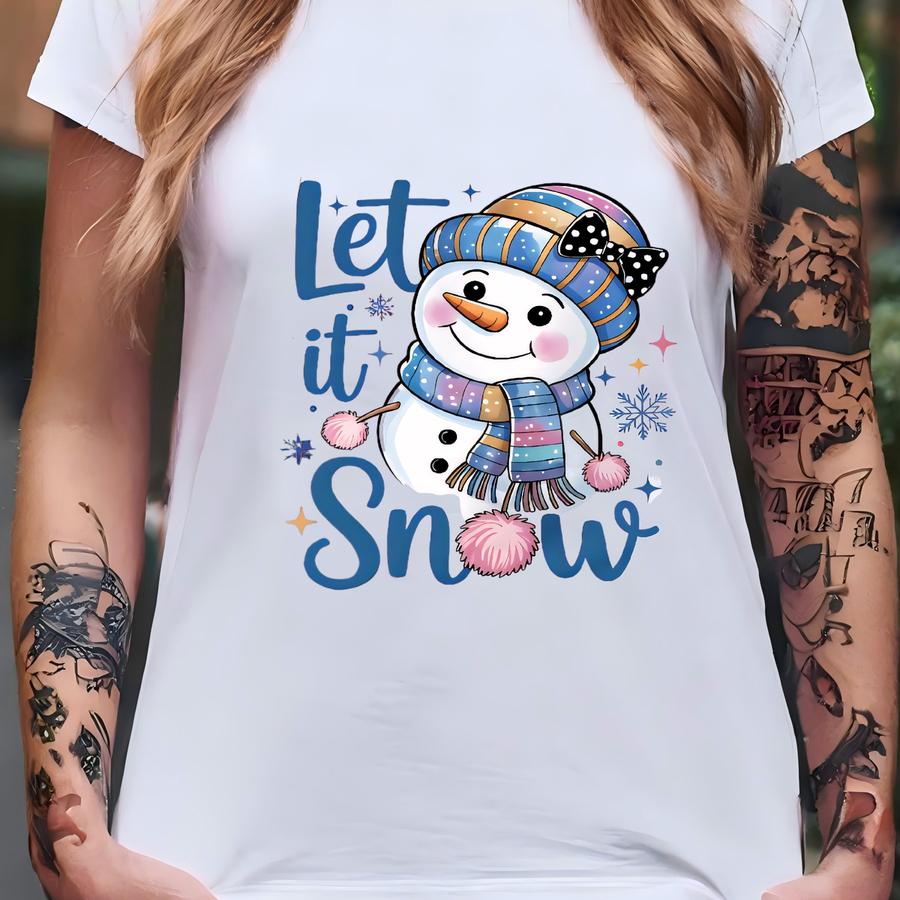 Let It Snow Sweatshirt, Cute Snowman Christmas Crewneck,preppy Winter Pullover, Cozy Holiday Sweater For Women, Christmas Outfit T-shirt