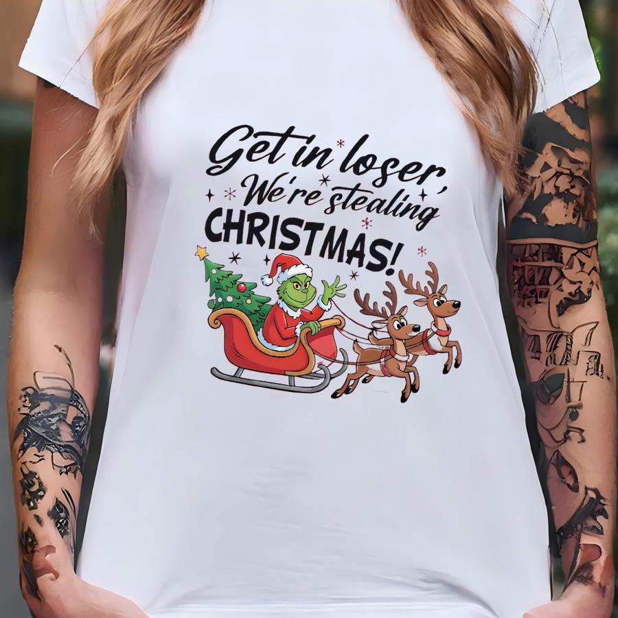 Get In Loser Were Stealing Christmas Shirt, Funny Christmas Tee, Holiday Graphic ® Shirt , Christmas Crewneck. T-shirt