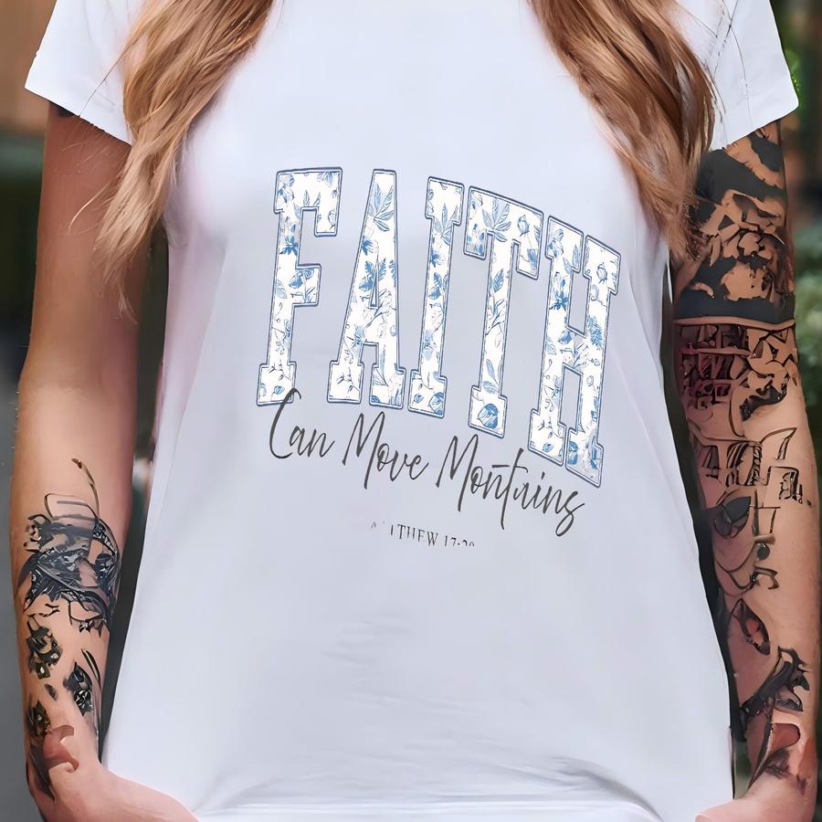 Faith Can Move Mountains Sweatshirt Bible Verse Crewneck Faith Sweater Religious Mom Shirt Jesus Lover Gift Womens Christian Gift Faith Tee T-shirt