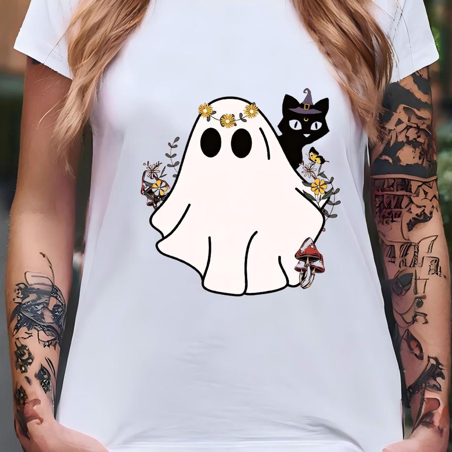 Halloween Tee, Ghost Cat Lover Fall Shirt T-shirt