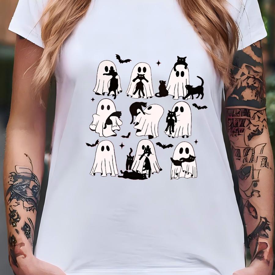 Ghost Cat Shirt: Retro Halloween Hoodie T-shirt