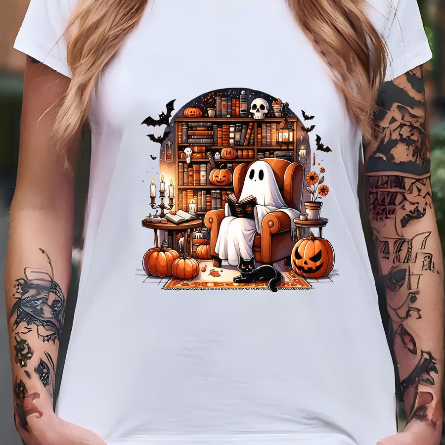 Halloween Ghost Reading Tee, Librarian Hoodie T-shirt