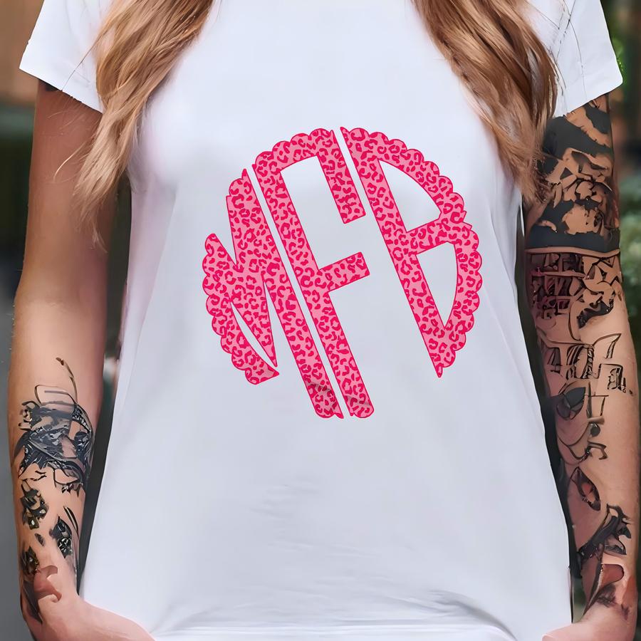 Monogram Hot Pink Leopard Sweatshirt, Personalized Monogram Crewneck T-shirt