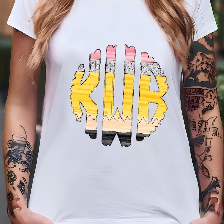Monogram Teacher Pencil Sweatshirt, Teacher Gift, Back To School Sweatshirt, Cute Teacher Shirt T-shirt