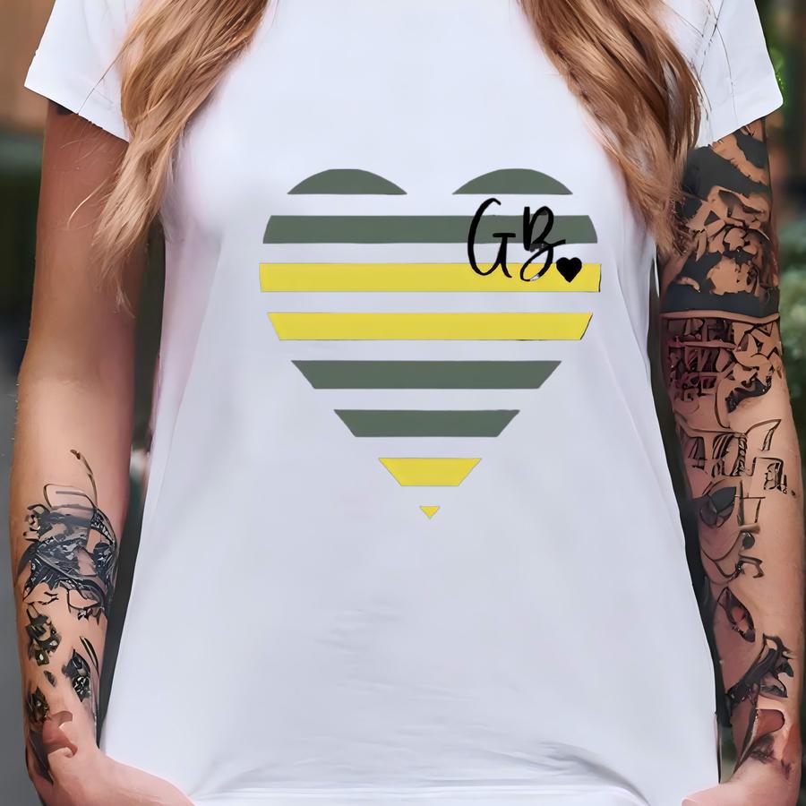 Green Bay Heart Football Shirt, Heart Sweatshirt, Green Bay Football Fan, Game Day Spirit Wear, Love Green Bay, Cheesehead Hoodie T-shirt