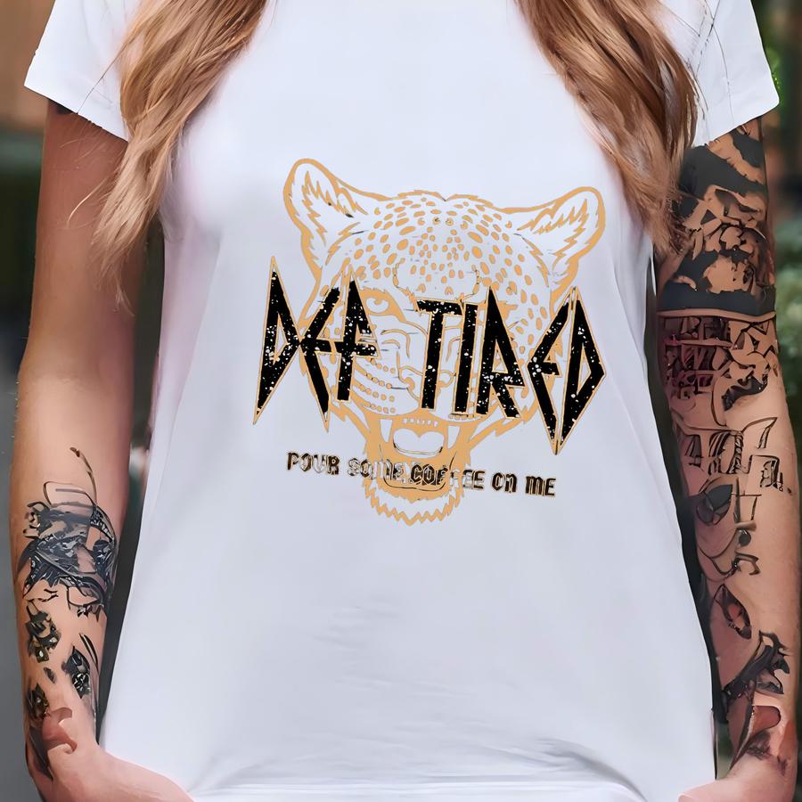 Def Tired Pour Some Coffee On Me Shirt, Leopard Shirt, Def Tired Shirt, Rock And Roll Shirt, Def Leppard, Rock Music Tee, Funny Coffee Shirt T-shirt