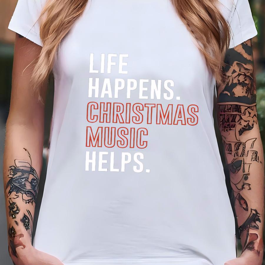 Life Happens Christmas Music Helps Sweatshirt, Happy Christmas Hoodie, Cute Holiday Sweat, Christmas Life, Xmas Party Sweatshirt, Merry Xmas T-shirt