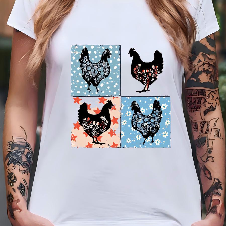Patriotic Floral Chicken Shirt, 4th Of July Chicken Shirt, Patriotic Shirt, Chicken Lover Gift, American Farmer Tshirt, Independence Day Tee T-shirt