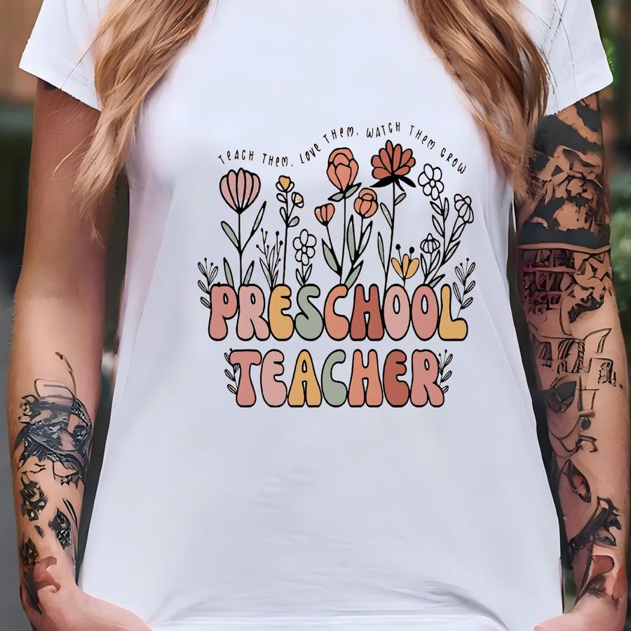 Floral Preschool Teacher Shirt, Teach Them Love Them Watch Them Grow, Preschool Teacher Gift, Back To School, Prek Teacher Shirt, Prek Gift T-shirt
