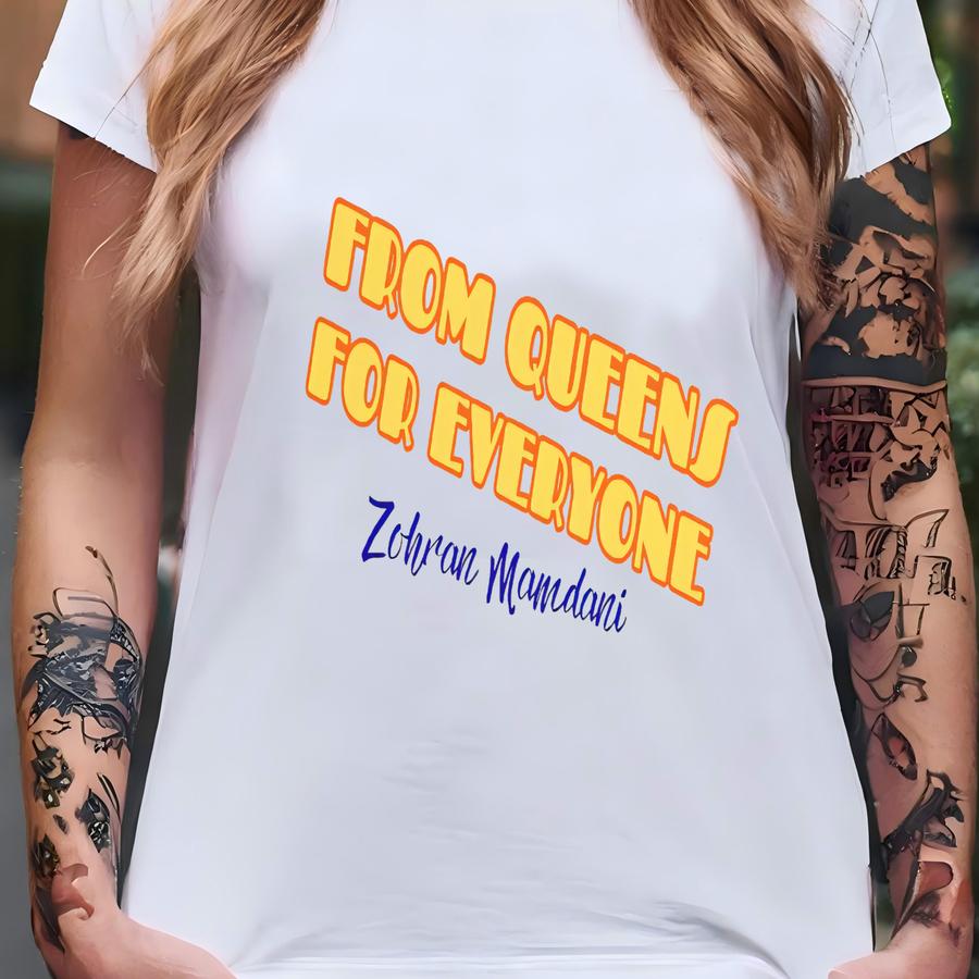 From Queens For Everyone Tee, Vote Zohran Mayor Mamdani 2025, Nyc’s First Muslim Mayor, Progressive Zohran For Nyc T-shirt