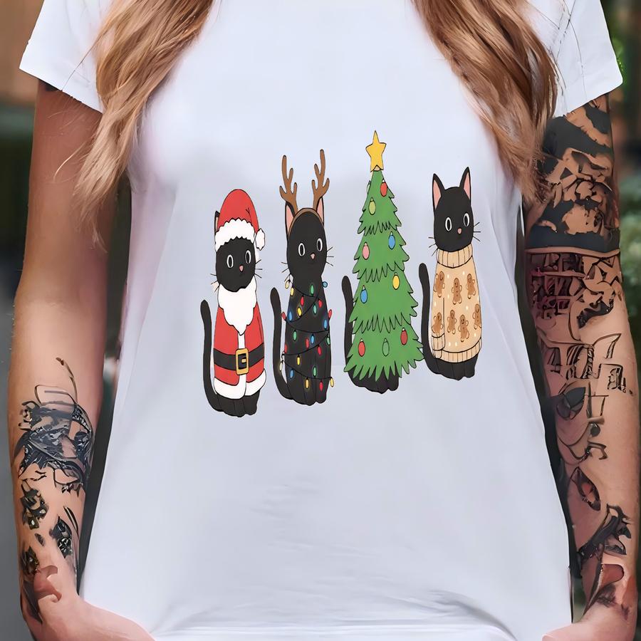 Funny Black Cats Christmas Shirt, Funny Cat Lover Sweatshirt, Cute Holiday Animals Hoodie, Santa Hat Xmas Lights Pullover, Cute Cat Mom Gift T-shirt