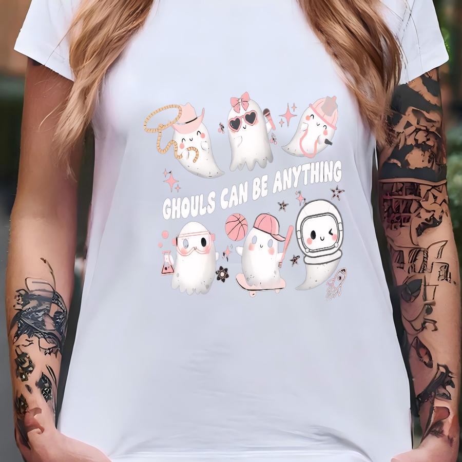 Ghouls Can Be Anything Halloween Shirt For Girl Fall Sweatshirt Cute Ghost Tee Toddler Tshirt Pumpkin Patch Outfit Retro Ghost Girly Shirt T-shirt