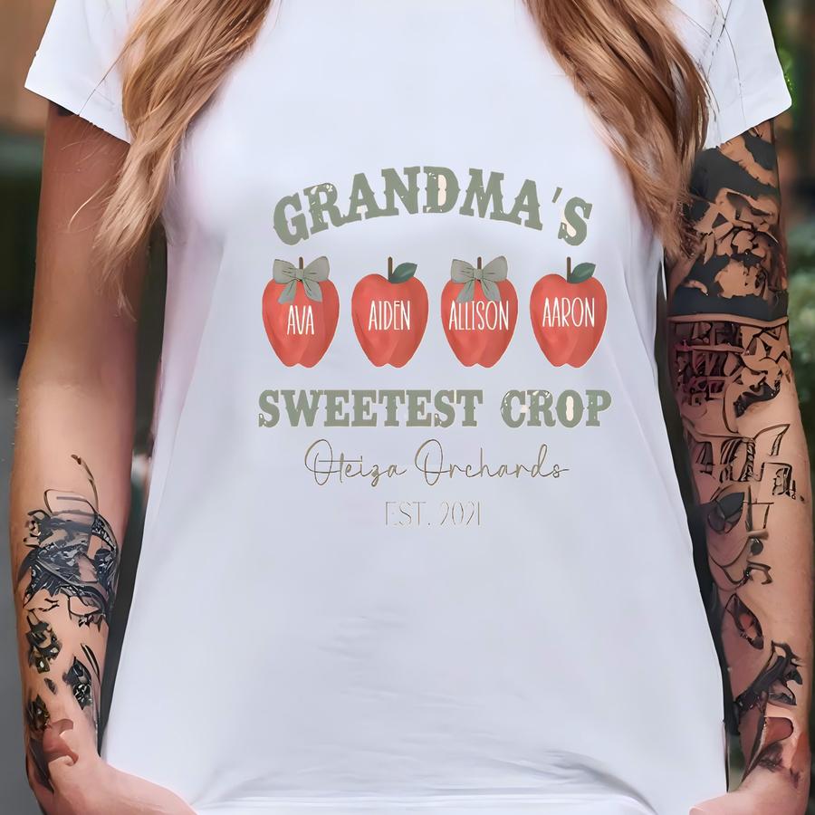 Grandma's Apples Fall Shirt Mama Fall Sweatshirt Custom Grandkids' Names Apple Picking Tshirt Gift For Gigi Personalized Granny T Shirt T-shirt