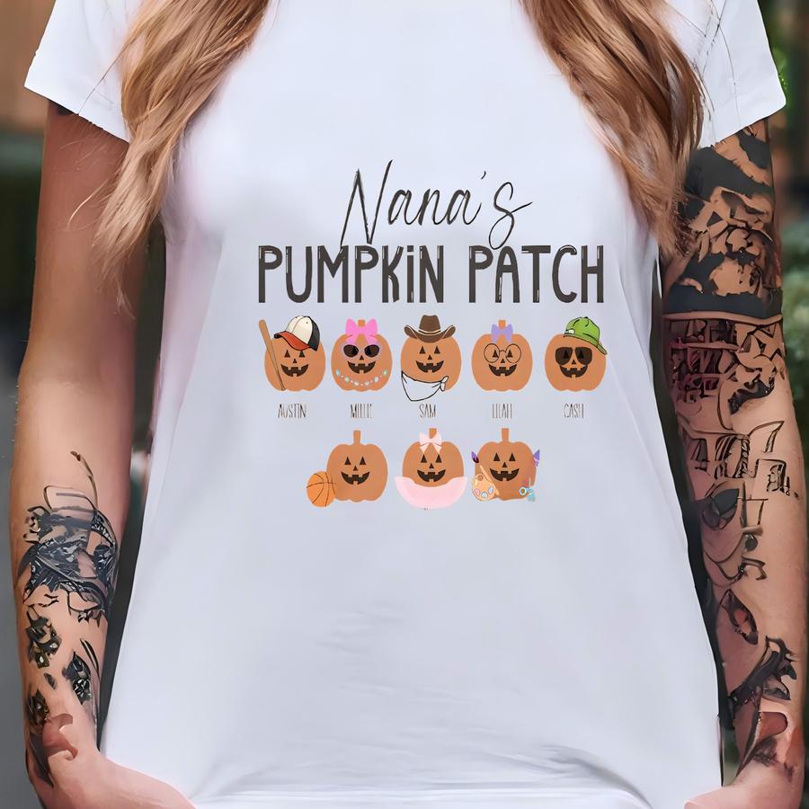 Grandma's Pumpkin Patch Fall Shirt Mama Fall Sweatshirt Custom Grandkids' Names Pumpkintshirt Gift For Gigi Personalized Autumn Gift For Mom T-shirt