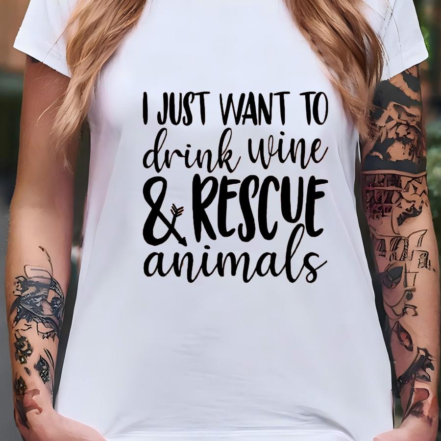 Drink Wine Rescue Animals Tee T-shirt