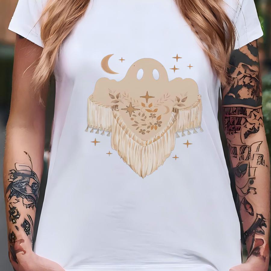 Hoodie, Macrame Ghost Tee, Women's Shirt, Fall Halloween T-shirt