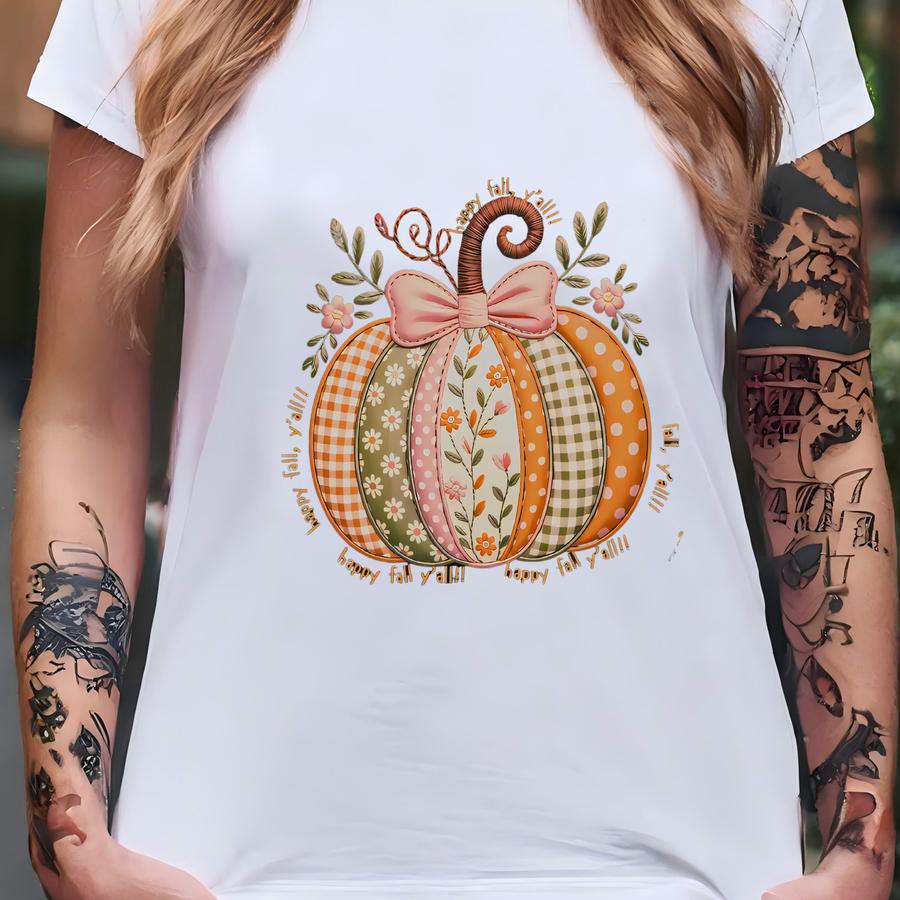 Patchwork Pumpkin Hoodie: Boho Floral Fall Tee T-shirt