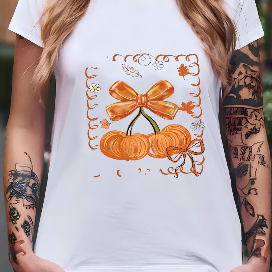 Fall Pumpkins Hoodie: Preppy Coquette Bow Tee T-shirt
