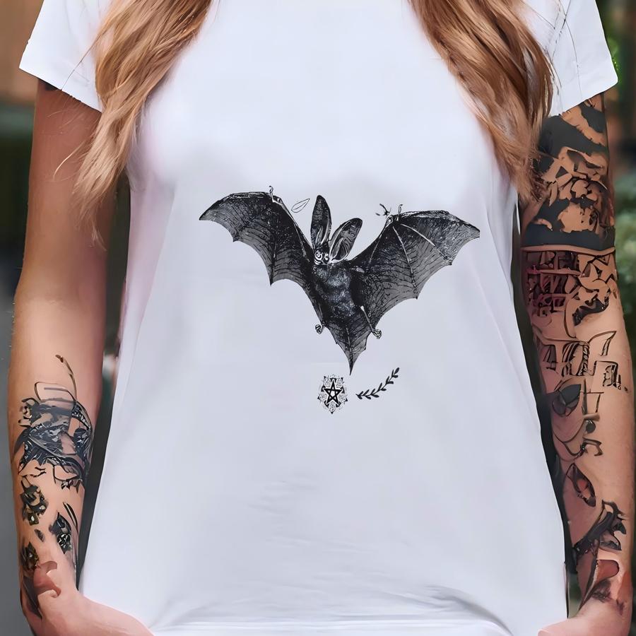 Gothic Ringer Hoodie: Halloween Bat, Vintage Feel T-shirt