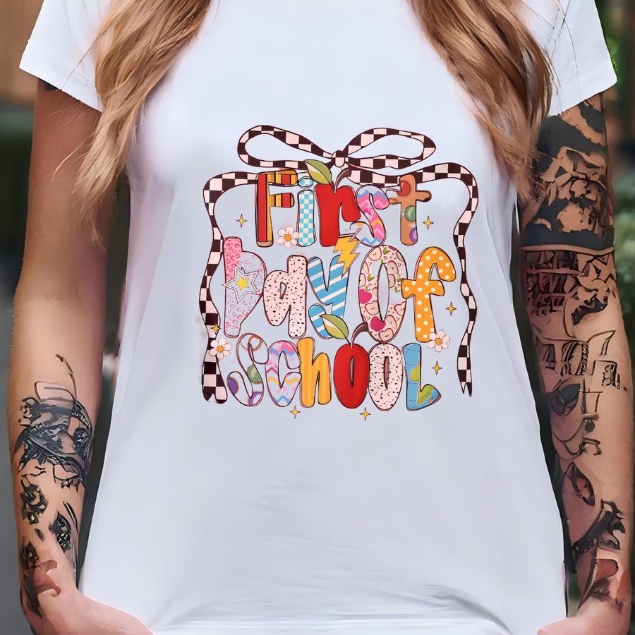 First Day Of School Hoodie, T Shirt, Coquette Hoodie, Teacher Tee, Retro-feel Shirt, Preppy Design Hoodie, T-shirt