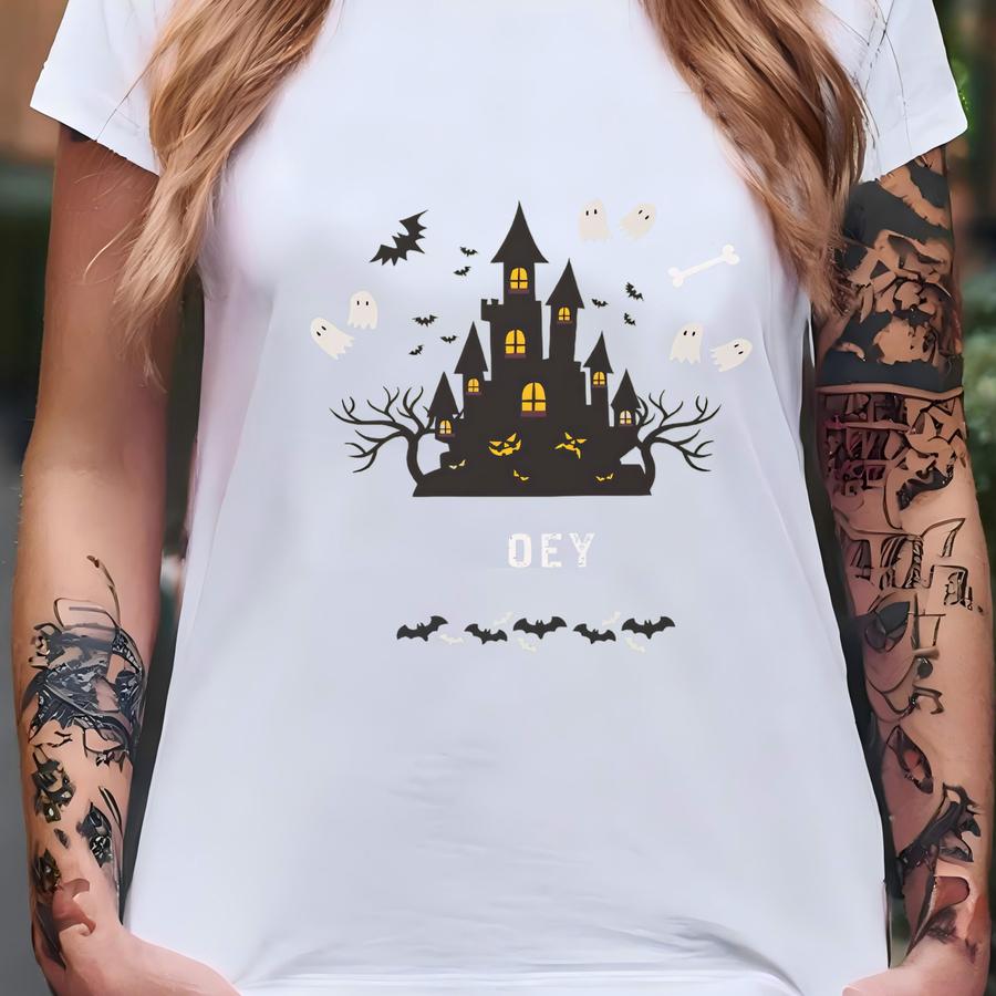 Haunted House Custom Notebook A5 Spooky Halloween Gift Teen Boy Journal Sage Green Book Personalized Diary Creepy Palace Ghost Story Writer T-shirt