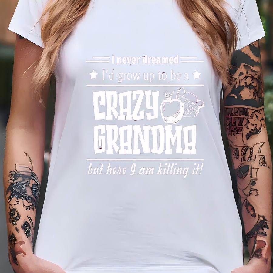 Funny Grandma Shirt Hoodie, I Never Dreamed I'd Grow Up To Be A Crazy Grandma Tee, Grandma Shirt Tee Hoodie, Funny Grandmother Tee Tees T-shirt